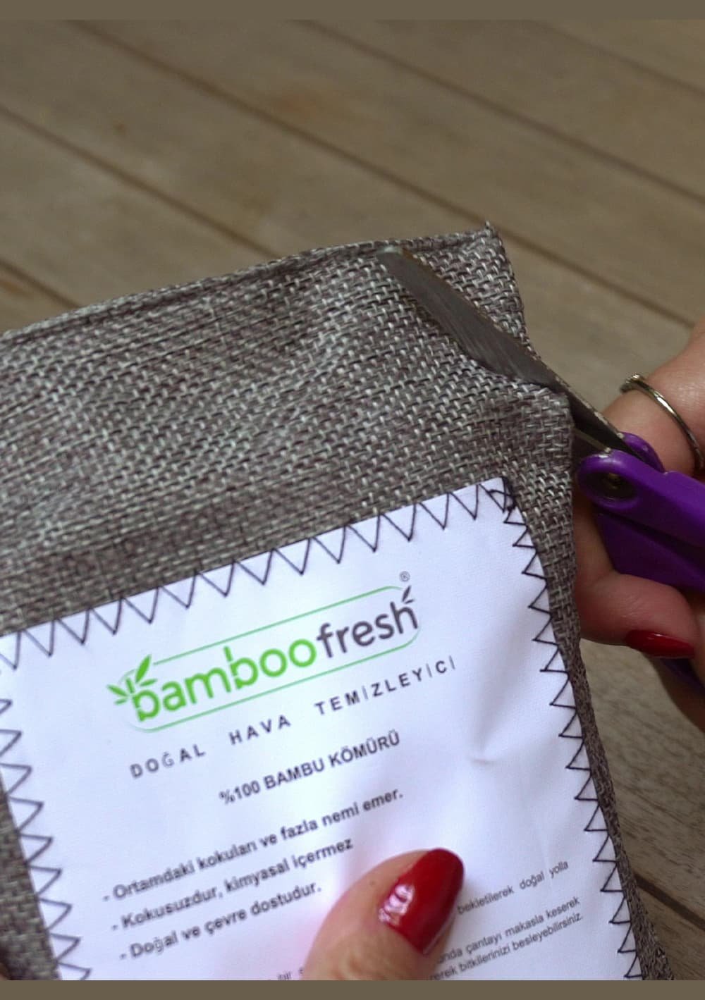 Kullanımı çok kolaydır. Tek yapmanız gereken, hava geçirmez ambalajından Bamboofresh Çantanızı çıkartarak evinize yerleştirmek ve sihirli temizliğin keyfini çıkartmak.