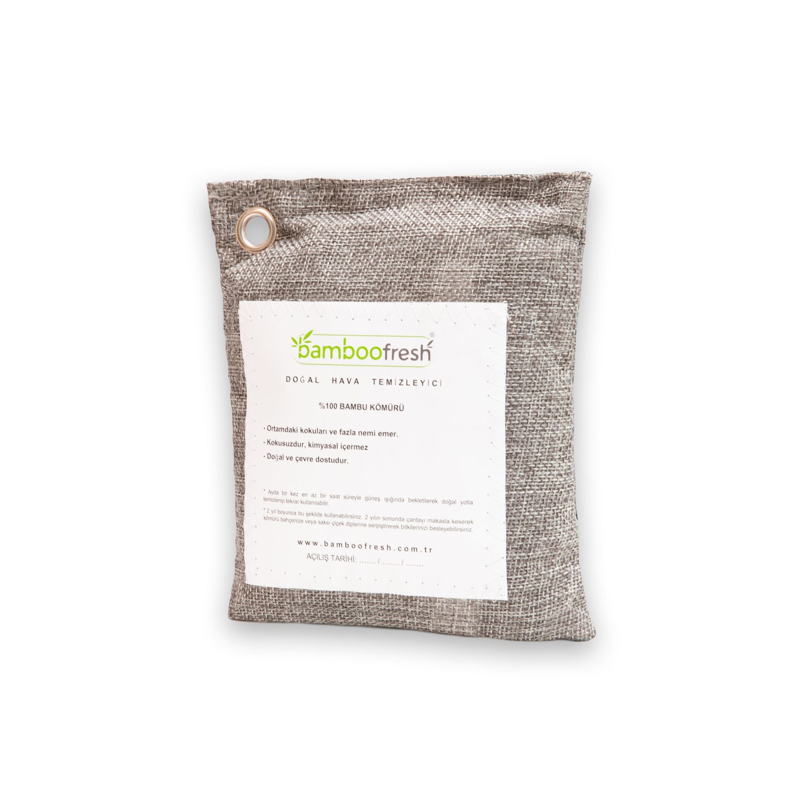 Şık tasarımlı Bamboofresh Çantamız 8-10 metrekareye kadar etkilidir. Arabalar, Dolaplar, banyolar için uygundur. Metal halkası sayesinde herhangi bir küçük alana veya dolap askılarınıza kolayca asabilirsiniz.
